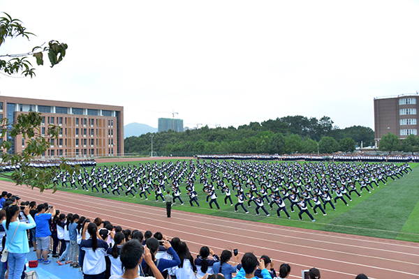 随后,军训成果展示与汇报表演有序进行。踏着激昂有力的乐曲节拍,在校旗护卫队的引领下,各个方阵的同学们满怀豪情,精神抖擞,迈着整齐划一的步伐,喊着嘹亮清脆的口号,依次正步走过主席台,充满自信地展示出分列式训练成果。新生代表们进行了集体军体拳等军事科目表演,他们的精彩展示,赢得了现场师生的热烈掌声。