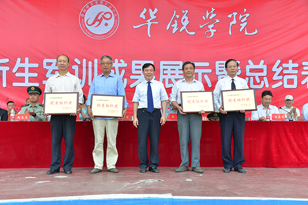 张莉指出,军训成果检阅和表演严整有序、气势恢宏、精彩纷呈,充分展示了华锐学子的精神风采和蓬勃朝气,体现了部队首长和教官们付出的心血结晶。希望同学们把军训作为大学生活的一个良好开端,将军训所培养的良好品德和优秀作风带到今后的学习生活中去,以勇敢顽强、吃苦耐劳的优良作风,一丝不苟、严肃认真的处事态度和力争上游、敢为人先的进取精神,揭开人生新篇章,开创人生新征途。