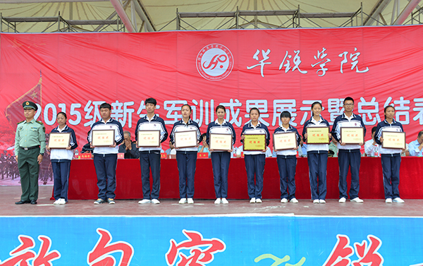 会上,高云宣布了学院《关于表彰2015级新生军训先进集体和先进个人的决定》。与会领导分别为荣获优秀组织奖的中文系、艺术系、社会科学系、经济管理系等4个单位,荣获先进班集体的化学本科2班等15个军训班级,荣获内务整理优胜奖的数学与应用数学1班等15个军训班级,荣获分列式优胜奖的英语本科5班等20个军训班级,荣获优秀教官的黄凡等15位教官及荣获先进个人的土木工程系李冰等50位同学颁奖并合影留念。