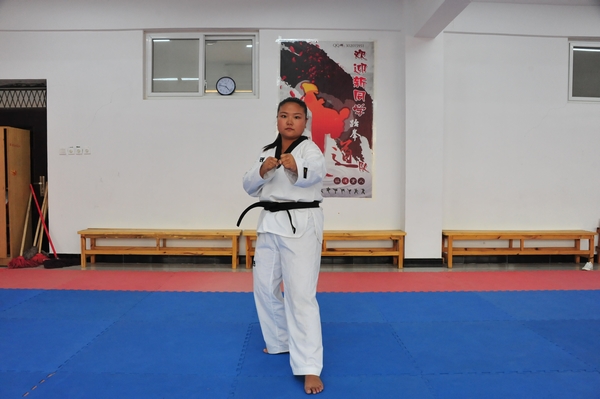 初见张月明时,她由于受伤正在寝室休息,但那爽朗的笑声和逗趣的表情,让笔者不由自主地喜欢上这个可爱的女孩。一身跆拳道服、一幅行囊、一种信仰,张月明从小学五年级便开启了自己的跆拳道之旅。“痛苦和困难是难免的,但是我既然选择了就必须坚持下来,人总要有值得自己为之努力的东西”,当问及是什么让她坚持到现在,她微笑地说:“我喜欢大家为我鼓掌加油的感觉,也是这些掌声鼓励我坚持了下来”。学习跆拳道的第一年,张月明被教练选中参加道馆的表演赛,当时的她既兴奋又有压力。作为全道馆年纪最小的表演者,同时也意味着基本功没有其他师哥师姐来的扎实,力量上也稍有欠缺。表演赛前的练习,师哥师姐们干净利落地完成踢木板的任务,张月明却在一块木板上停了下来,“胆怯、怕疼、踢不断”她笑着对我们回忆着,“半个月之后的比赛上,我知道这块板子终归是要被自己踢断的!在我使足全力将木板踢断的那一瞬间,全场观众为我鼓掌加油,我当时抱着师姐一直哭……”从那一刻起,她真正明白了掌声带给她的意义与掌声背后所要担起的责任。凭着对跆拳道的满腔热情与执着信念,她一直严格要求自己,通过刻苦训练来提高自身技能,最终,她收获了多项荣誉,初中时就在马来西亚吉隆坡参加比赛,并取得佳绩。