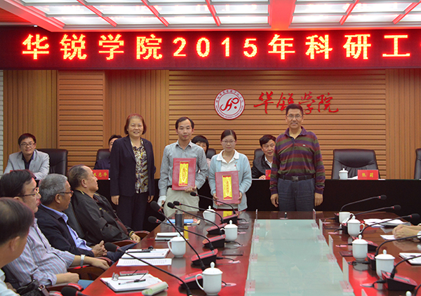 科研先进单位和先进个人代表外语系主任罗德喜、理工系主任魏明坤和数学与计算机系教师沈守强等在会上先后发言,总结交流了科研工作经验和体会,并对进一步加强学院科研工作提出了富有建设性的意见和建议。