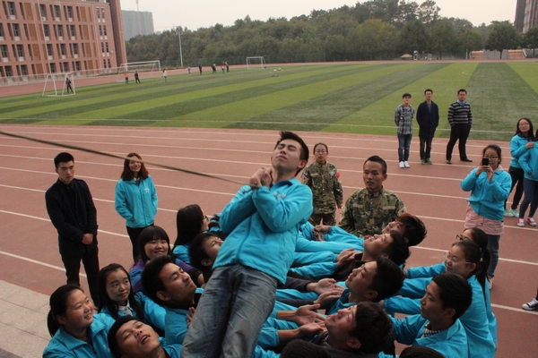 活动伊始,拓训营总教练鞠法胜向学生干部们介绍了素质拓展训练的起源,并对此次培训提出了具体要求。热身游戏“桃花朵朵开”拉开了本次活动的序幕。“直呼其名”、“我的团队”增进了队员之间的相互了解,增强了彼此的亲密度;“太空椅”和“同起同坐”,增强了队员的团队意识,凝聚了团队力量;“信任背摔”,让同学们深刻体会到了团队成员之间相互信任的重要性;在“领袖风采”项目中,根据游戏规则,队员的一点误差就会造成队长受罚,因此,同学们越发懂得了责任、担当、团结和努力在团队中的重要意义。同时,还进行了“巧解千千结”、“支援前线”、“千里传音”、“达芬奇密码”等活动项目,在妙趣横生的游戏中,队员们进一步明确了自己的团队角色和努力方向。