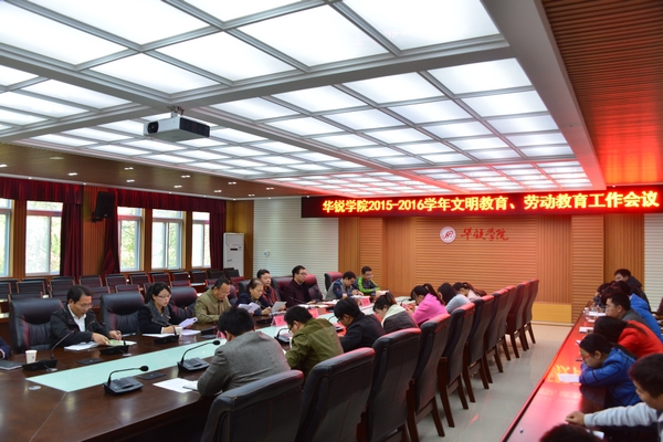 11月3日下午,学院2015年文明教育、劳动教育暨安全教育月活动动员大会在行政楼208会议室召开。党委书记张莉、副院长王志华出席大会,有关部门负责人王力、张甲楠、胡秀云和各系辅导员参加了会议。会议由张甲楠主持。