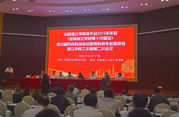 11月7日至8日,中国独立学院协作会2015年年会(全国独立学院第十次峰会)暨中国民办教育专业委员会高等教育协会独立学院工作部第二次会议在广州召开。中国民办教育协会高等教育专业委员会、广东省教育厅相关领导及来自全国28个省(市、自治区)200余所独立学院的470多名代表与会。我院院长施昌海等应邀参加了会议。