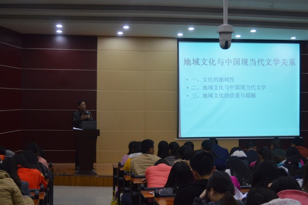 彭岚嘉教授在报告中对地域文化与中国现当代文学的关系进行了解读和阐释。他着重讲解了文化的地域性内涵,并在此基础上探讨了从地域文化角度研究中国现当代文学的理路,进而论析地域文化的借重与超越对文学发展的重要性。