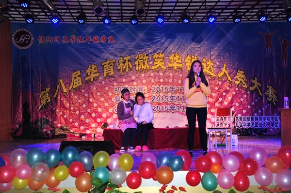 11月18日晚,由院团委主办,社会科学系团总支、学生会承办的第八届“华育杯”微笑华锐出彩人决赛在大学生活动中心举行。党委书记张莉、副院长王志华、社会科学系主任陈录生、学生工作部副部长张甲楠和600余名师生观看了比赛。河南省音乐家协会会员、河南省曲艺家协会会员朱奇禹,信阳师范学院音乐学院声乐讲师赵要钦,醒客乐队队长于恒,醒客乐队主唱张洁应邀担任大赛评委。