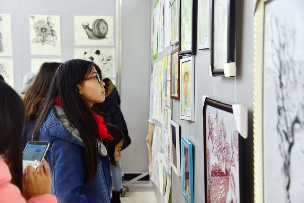 日前,学院首届大学生科技文化艺术节书法、篆刻、摄影、美术、动漫类作品展在艺术系第二展厅举办。院长施昌海,院党委书记张莉,副院长王志华、毛海涛,院长助理杨高伟,有关系部负责人李世胜、潘传柏、张富庄、张甲楠、胡秀云、高雅和部分师生参观了展览。