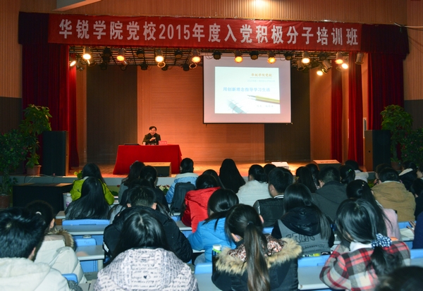 12月3日晚,院长施昌海教授在大学生活动中心为党校2015年度入党积极分子培训班学员作了题为《用创新理念指导学习生活》的专题辅导报告。党委办公室负责人张俊忠、招生就业部秘书袁文霞等和近800名学员聆听了报告。