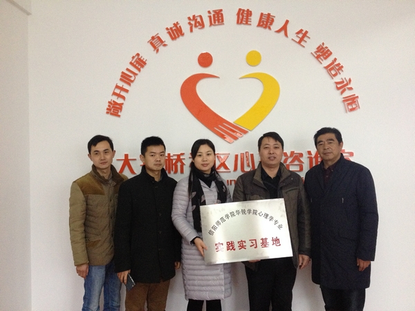 12月10日上午,应信阳市浉河区五星办事处组织委员许厚军,五星办事处大拱桥社区党支部书记吴学龙的邀请,我院社会科学系教学秘书张红梅、大学生心理健康辅导中心宋川川老师与信阳市浉河区五星办事处大拱桥社区领导共同签署建立学院心理学专业实习实践基地协议,并举行了授牌仪式。