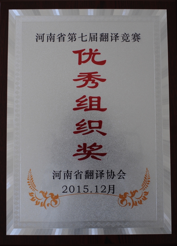 日前,由河南省翻译协会举办的河南省第七届翻译竞赛已圆满结束,我院在本次竞赛中取得令人瞩目的优异成绩,获得了河南省第七届翻译竞赛优秀组织奖。