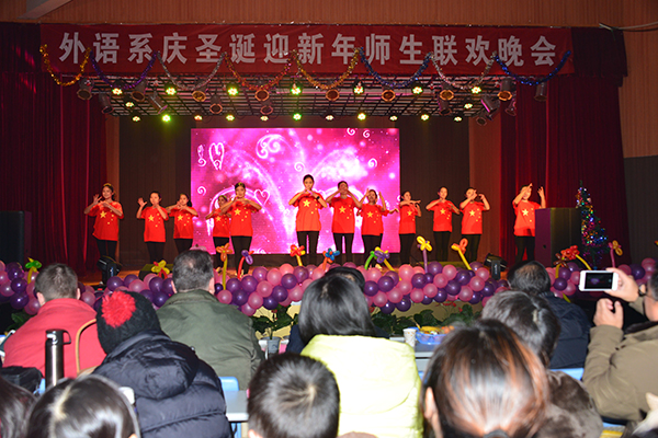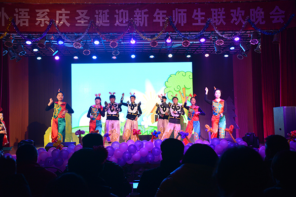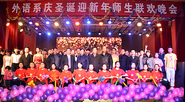 12月22日晚,外语系“懂个隆冬”庆圣诞迎新年师生联欢晚会在大学生活动中心精彩上演。院长施昌海和有关系部负责人罗德喜、傅瑛、陈录生、王金献、李世胜、潘传柏、王力、张富良、张富庄、李赟等与800余名师生一同观看了此次晚会。