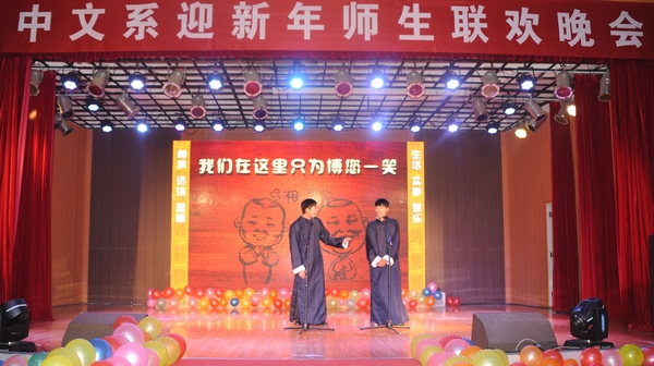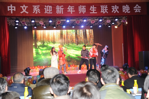 晚会开始前,大屏幕上播放了中文系学生代表向全系师生表达新年祝福的视频。《招财童子》带来了二十四节气、民俗节日等节目表演,为晚会营造了欢乐的氛围。