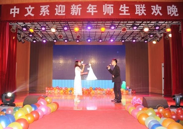 12月28日晚,中文系“吉羊如意去,灵猴踏春来”2016年庆元旦迎新春师生联欢晚会在大学生活动中心隆重举行。学院董事长高峰,副院长王志华,有关系部负责人罗德喜、傅瑛、陈录生、王金献、王钢城、李世胜、王力、张天定、张富良、张甲楠等与600余名师生共同观看了晚会。