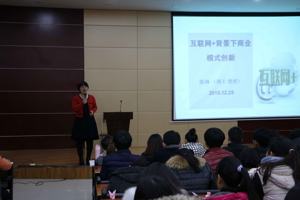 陈琳教授在《“互联网+”背景下商业模式》主题报告中,深入阐述了商业模式的定义,并指出,创造、传递、获取,是商业模式竞争优势的必要条件。商业模式的生存离不开创新,微信、余额宝等互联网经营模式已越来越普及。互联网+经济的具有4个特征:平等、开放、协助、共享。她还就师生们有关如何适应互联网+商业模式,进行创新创业等问题作了细致地解答。