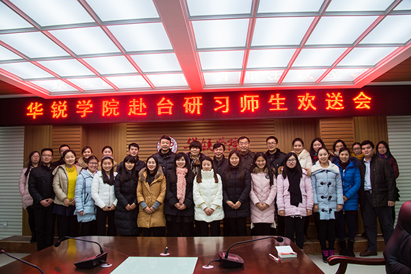 本批师生赴台前,学院在行政楼208会议室召开了隆重的欢送会。院长施昌海,党委书记张莉,副院长王志华、毛海涛,院长助理杨高伟出席了欢送会,有关部门负责人张富庄、叶十朋、芦金凤等与赴台研习师生共同参加了会议。欢送会由张莉主持。