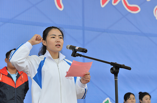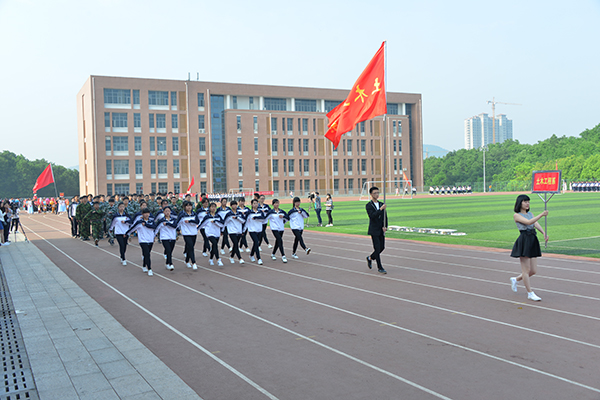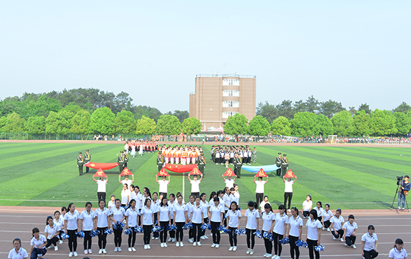 在现场热烈的掌声与欢快的气氛中,高云宣布学院第九届春季运动会开幕。
