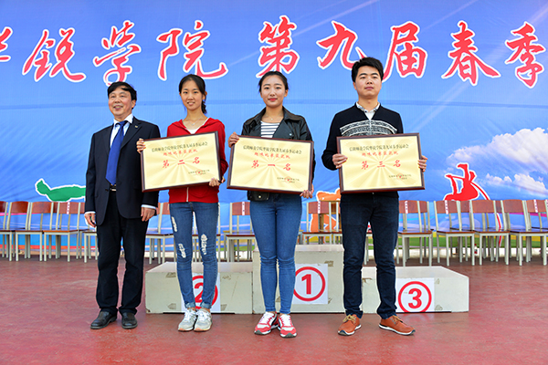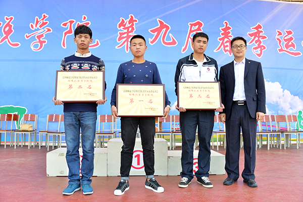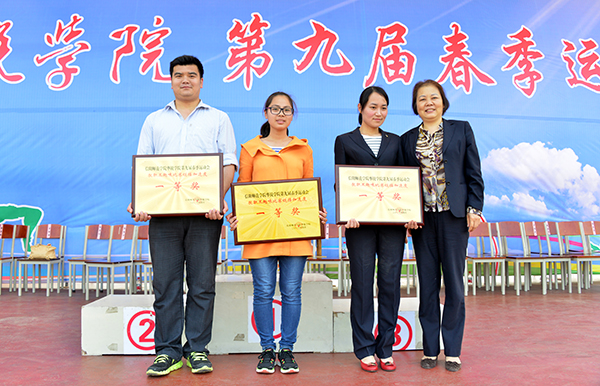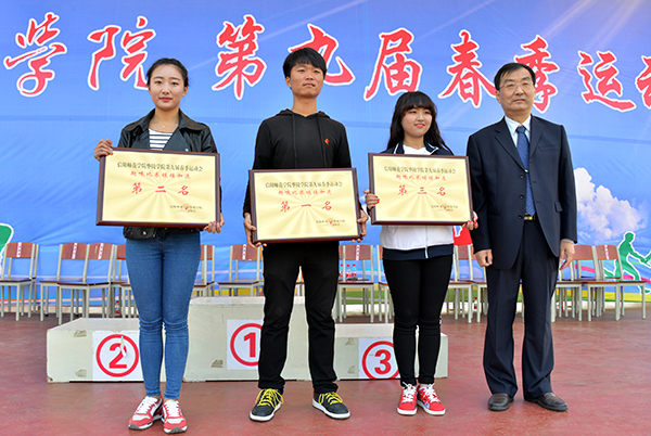 上午,院领导为前期举行的袋鼠跳、链接加速、跳绳、拔河等趣味竞赛项目前三名的单位和师生运动员颁发了奖牌。