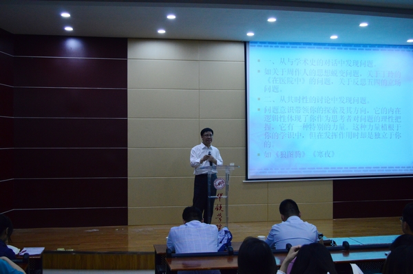 陈国恩教授认为文学批评是人类认识世界、认识社会、认识自我以确认自我存在价值的一个重要方式。做好文学批评有两个重要条件,即问题意识和艺术想象。问题意识是把我们对于批评对象的思考自觉凝聚到一个有意义的方向上的认知结构心理。由此,可从两个方面发现和提出问题:一是从与学术史的对话中发现问题。他以周作人的思想蜕变问题和反思五四立场问题为例予以阐述;二是从共时性的讨论中发现问题,他以小说《狼图腾》和《寒夜》为例,深入文本,进行了详细分析,指出文学批评中对问题的思考,不是对社会、思想和伦理问题的直接思考,而是从作品的审美性出发进行的探索;不是纯粹理性的,而是伴随着审美感性的。文学批评要从文学的审美世界中发现问题,要把作品的艺术描写解释为自己的理性思考所需要的意义,要伴随着自己的感动来思考,从而对作品做与众不同的理解。