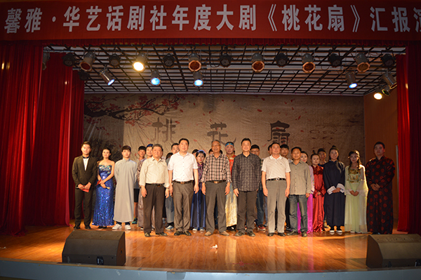 5月25日晚,由文学院馨雅•华艺话剧社排练的话剧《桃花扇》在大学生活动中心上演。信阳市政协副主席陈伟琳、浉河区党史办主任廖家宽、浉河区纪委常委杨聚里、浉河区纪委宣传部部长吕雅丽、信阳广播电视台新闻部有关负责人陈浩,我校副校长王志华,有关方面负责人罗德喜、傅瑛、李世胜、吴长才、张富庄,特聘教授裴惠生、李一平、贾齐华和500余名师生共同观看了本次演出。