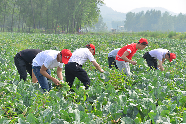5月30日,我校有关方面负责人王钢城、李世胜、张天定、于祥杰、王力、张富庄、张俊忠、胡秀云、叶十朋等与30余名师生志愿者一起,前往游河乡李畈村开展实地帮扶。在菜农们的指导下,大家不畏炎热,不辞辛劳,踏进泥泞的花菜地,针对成熟状况不一的花菜精心操作,热火朝天地进行盖菜、扒菜、除草、装袋、装箱,以自己的爱心志愿劳动帮扶菜农,并现场代表学校购买了3150斤有机花菜,有效缓解了当地农民花菜销售难的问题。