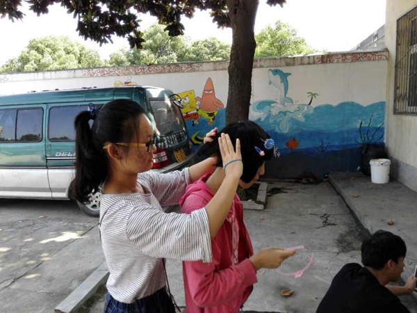在该福利院工作人员的热情带领下,学子们参观了福利院的宿舍、教室、活动室等生活场所,了解了孩子们的日常学习和生活状况。虽然他们中大多数患有先天残疾,但都非常乖巧懂事,见到同学们亲切地喊着哥哥姐姐。同学们和这群可爱的孩子们快乐的互动起来:有的为孩子们梳洗打扮;有的和孩子们一起自拍,记录下美好的时刻;有的一起做游戏。