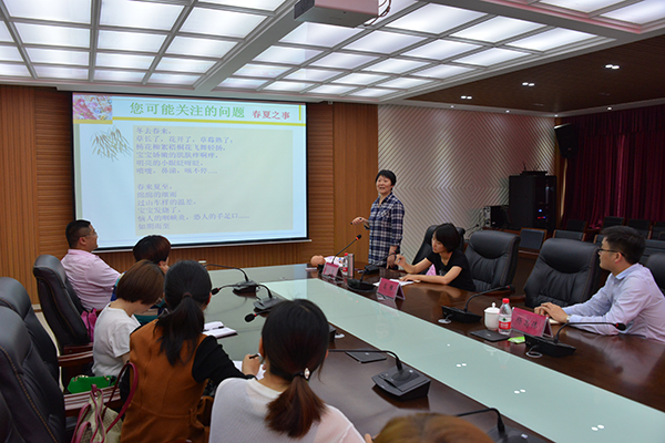 6月6日下午,信阳职业技术学院附属医院副院长赵慧应邀在我校行政楼208会议室作了题为《科学育儿家庭常识》的辅导报告。校长助理杨高伟,有关部门负责人高雅、胡秀云等和部分教职工聆听了报告。