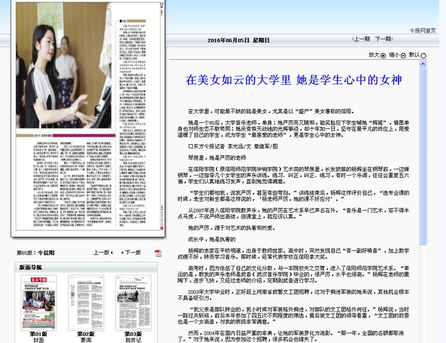这篇题为《在美女如云的大学里 她是学生心中的女神》的长篇报道在上述媒体集中刊发,宣传了我校青年教师的爱岗敬业、教书育人事迹,增强了我校的社会美誉度。