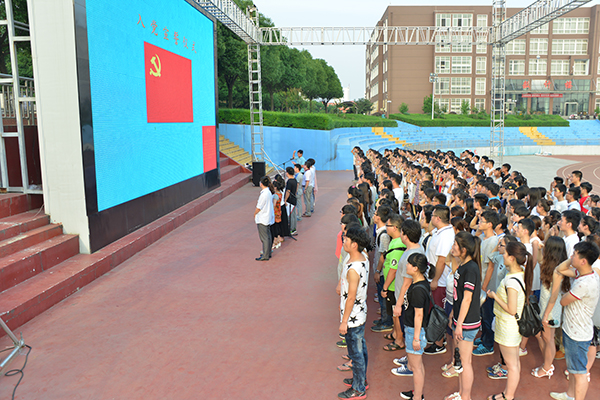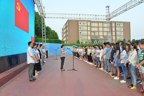 仪式在雄壮、庄严的国际歌声中拉开帷幕。张富庄宣读了《中共信阳师范学院委员会组织部接收预备党员便函》。在万建章领读下,294名新党员面对鲜红的党旗,郑重举起右手,庄严地向党宣誓:“我志愿加入中国共产党,拥护党的纲领,遵守党的章程,履行党员义务,执行党的决定,严守党的纪律,保守党的秘密,对党忠诚,积极工作,为共产主义奋斗终身,随时准备为党和人民牺牲一切,永不叛党。”誓词声声,表达了党员们为共产主义事业奋斗终身、永葆党员先进性的坚定信念。参加仪式的领导、老党员代表重温了入党誓词。娄琪、高倩分别代表老党员、新党员作了发言。