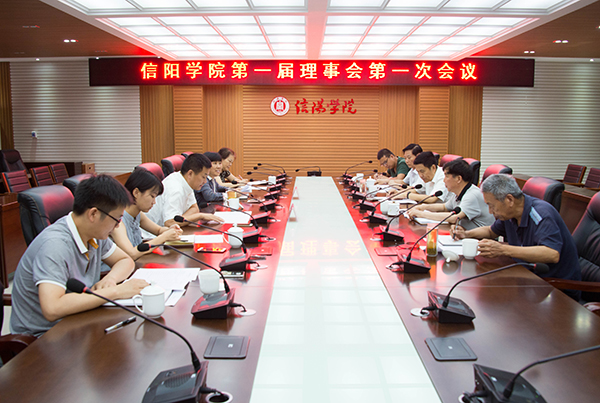 6月16日上午,新成立的信阳学院理事会在行政楼208会议室召开第一次全体会议。天泰集团董事长高峰,学校理事长高云,理事施昌海、张莉、傅洪涛、杨高伟、高雅、傅瑛、陈录生、王章力等出席会议。