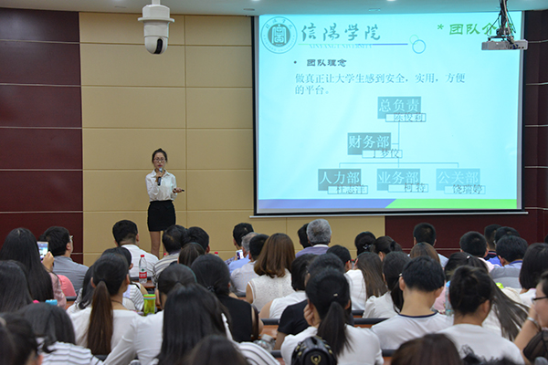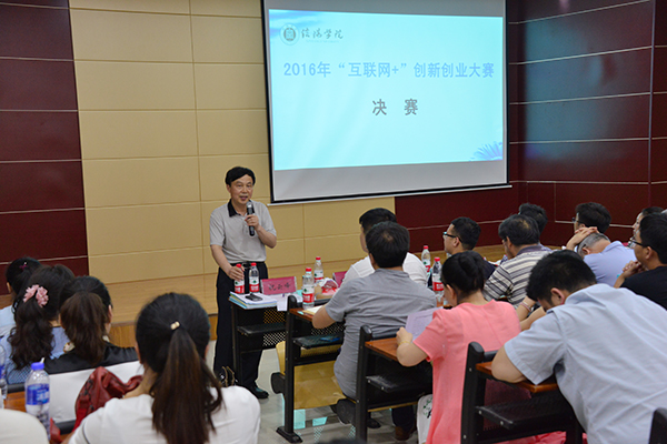 6月17日上午,由招生就业处、团委主办的我校2016年“互联网+”大学生创新创业大赛决赛在图书馆102报告厅隆重举行。共青团河南省委青创中心创业网主任祝云峰、河南省UFO众创空间总经理杜仲宇、信阳市人社局创业培训科科长方湘琴、信阳市浉河区劳动就业培训中心主任单绍雪、信阳青年网络创业孵化中心执行主任陈凯、信阳市中小企业服务中心副主任潘波、信阳市新世纪职业培训学校校长方君应邀担任评委;校长施昌海、副校长王志华、校长助理杨高伟出席本次活动,与我校200余名师生共同观摩了此次比赛。