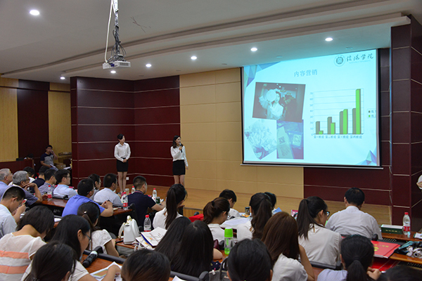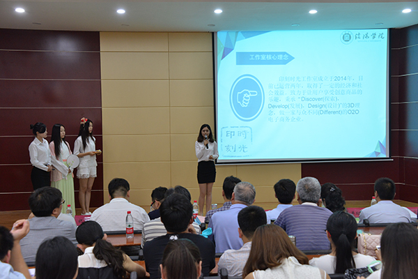 比赛共分现场展示和问题答辩两个环节。12支参赛团队依次精彩亮相,项目负责人分别围绕“互联网+”这个主题,结合精美制作的PPT演示文稿,从项目概述、产品及服务特色、市场分析、营销企划、人员分工、财务结算、风险评估、发展前景等几个方面向现场观众阐述了自己的创业思路,并热情回答了评委老师的提问。个别参赛团队还向评委老师展示了制作精良的创业产品。选手们自信的台风、严密的论证、流畅的语言,赢得了在场观众的阵阵掌声,比赛现场高潮迭起、亮点纷呈。