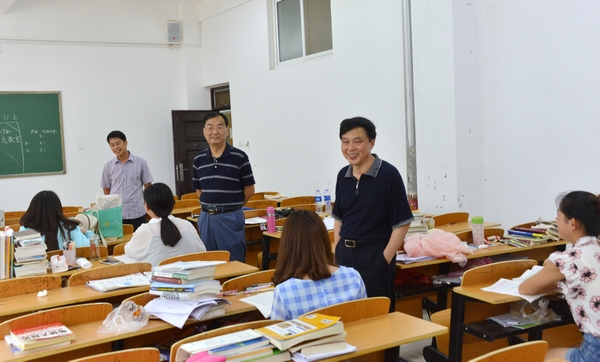 8月26日下午,校长施昌海、副校长毛海涛在有关部门负责人张富庄、叶十朋等陪同下,走访考研自习教室,看望暑期留校复习考研学子。