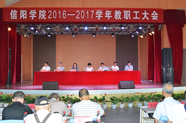 施昌海作了重要讲话。他首先简要回顾了学校上学年所取得的工作成就。一年来,在集团董事会和学校理事会的正确领导下,全校各级领导干部和全体师生齐心协力、共同奋斗,学校各项工作都取得了显著成绩。学校成功实现了转设更名目标,开启了信阳学院新征程。顺利获得了双学位教育资格,开始了汉语言文学、财务管理和经济学等专业双学位教育。新建物联网工程等5个本科专业及商务英语等4个专科专业,并开展学前教育、英语教育等专科专业招生培养工作。建成了汉语言文学等省级品牌专业和汽车服务工程省级综合改革试点专业。毕业生考研继续保持优良传统,在重点学校免试生比率增长的情况下,仍有450名同学成功考取硕士研究生。学校2016年招生规模进一步扩大,生源质量明显提高,本专科招生人数达到6300多名,高分新生大量增加。师资队伍建设取得新的进展,大批专家学者和青年教师加盟学校;教师获得省教育厅及其以上科研项目、发表学术论文、出版著作和发明专利等数量和质量都有明显增长和提高。师生在全省英语、数学、艺术、思政、创新创业等各类专业性竞赛活动中获得多项奖励,傅瑛教授的爱心善举受到社会广泛点赞。学校成功获得省级平安校园、优质特色学校等荣誉称号。大一新生学习生活导师制开创了学校学生教育管理新途径,受到了广大师生的普遍欢迎和支持。集团董事会和学校理事会大力加强学校组织机构建设、师资队伍建设和基础设施建设,进一步改善了办学条件,扩大了办学自主权,提高了教职工薪酬水平,并集中调研解决了一系列发展中的实际问题。举办了一系列重大活动,激发了师生的爱校热情,树立了学校的良好形象,展示了师生的优良精神风貌,增强了学校的凝聚力。