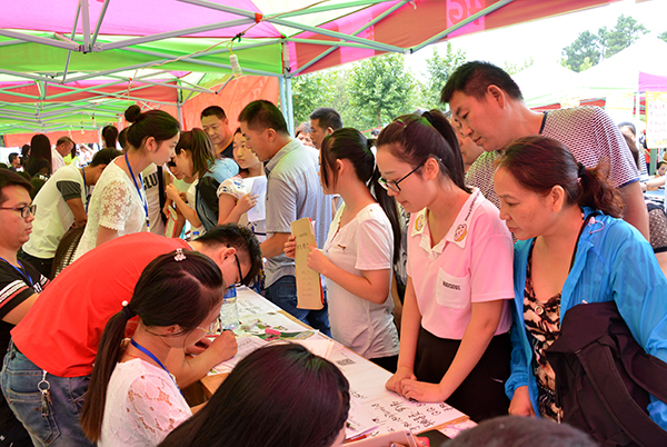 迎新现场“欢迎小‘石榴’,为信阳学院代言”的签名墙,受到了学校领导和广大师生及家长的欢迎,大家纷纷在上面签名,为信阳学院代言,表达对“小16”的迎接和祝福。校内主干道上,校园保安、校卫队队员、志愿者们引导着迎新报到的车辆和人群有序进出,安全便利地完成入学报到。在理工楼的迎新报到现场与行政楼的缴费服务窗口前,师生志愿者、医务人员和校园记者等迎新工作人员热情备至,为新生提供全方位服务。