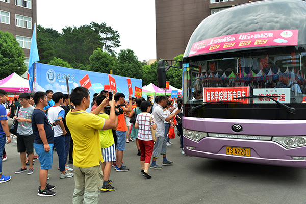 在学校的统一组织下,各部门通力合作,在火车站、高铁站、长途汽车站等专门安排了迎新接送车辆,校内开辟了多个停车场,设置了新生及家长接待处、新媒体服务与信息发布平台、免费茶水供应与医疗救助点等,最大限度地为新生报到提供了便利。为方便新生缴费,学校财务处微信公众号开通了缴费功能。与此同时,学校坚持将迎新作为新生入学教育的重要内容,大力加强迎新期间的宣传思想工作,各学院各班级在学生工作处等的统筹指导下,开通了新生班级微信、QQ群,公布了辅导员联系方式,新生通过手机扫描“二维码”便可快速添加,实现了网络预报到;校长办公室、宣传处、团委、学生工作处、招生就业处和各学院通力配合,在校园网开通了迎新专题网站,在学校微信公众号和微博刊发了多个迎新专题消息,并用校园广播制作播放了专业介绍等多个迎新及专业思想教育专题,同时在校园LED大屏幕、信阳学院贴吧等校园媒体平台,及时播放了校园文化视频和迎新动态消息,校学生会等组织精心组织编印了《新生入学指南》等入学指导手册。这些从网络迎新到现场迎新的贴心、创新、温馨服务,充分展示了信阳学院人的智慧与热情,极大地提升了本次迎新工作的效率,赢得了新生及其家长的良好口碑。