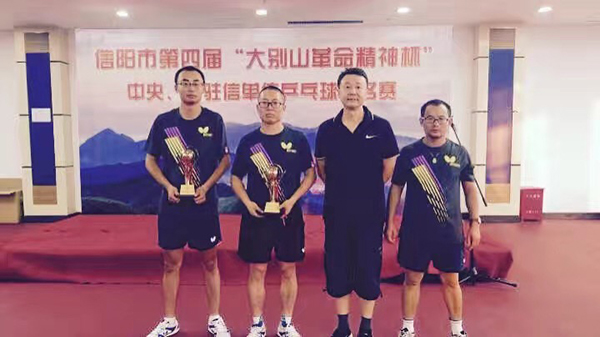 在我国乒乓球代表队在里约奥运会取得辉煌业绩和第67个国庆节到来之际,信阳市第四届“大别山革命精神杯”乒乓球排名赛日前在辉煌俱乐部举行。我校由副校长王志华、公共体育部教师史志涛、吴克河、孙冬阳组队参赛,顽强拼搏,力克群雄,顺利攻入四强,被组委会评为优秀组织奖单位。