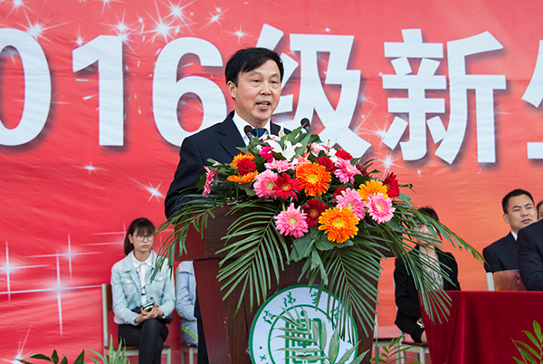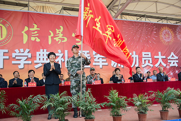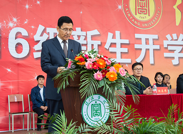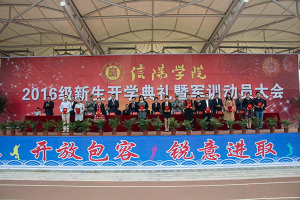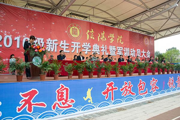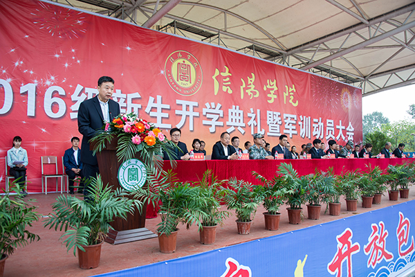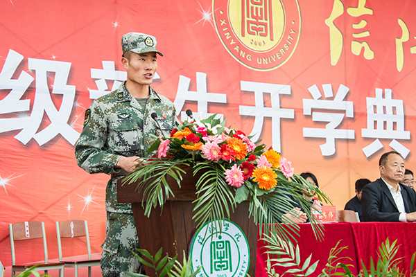 施昌海发表热情洋溢的讲话。他代表学校向来自全国各地的新同学表示最热烈的欢迎,向受到大会表彰的优秀新生和优秀导师表示最诚挚的祝贺,向承训部队首长和全体教官致以最崇高的敬意。他说,信阳学院不仅外在景色优美,依山傍水,鸟语花香;而且更具有追求公益性、坚持社会效益优先的崇高办学理想,坚持师生为本、保障师生发展需要的深厚人文情怀,遵循教育规律、注重人才培养质量的强烈科学精神等内在素养。学校董事会、理事会和各级领导与师生们日复一日、点点滴滴的不懈努力,共同构建了信阳学院的优秀品格和独特魅力,为万千莘莘学子成长成才创造了优越的环境和条件,提供着充裕的营养和能量。
