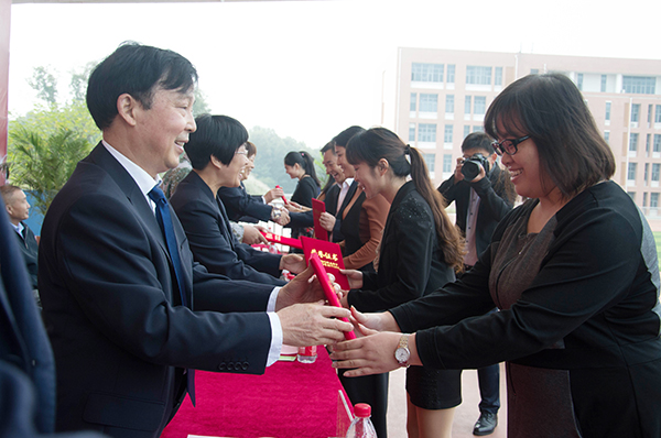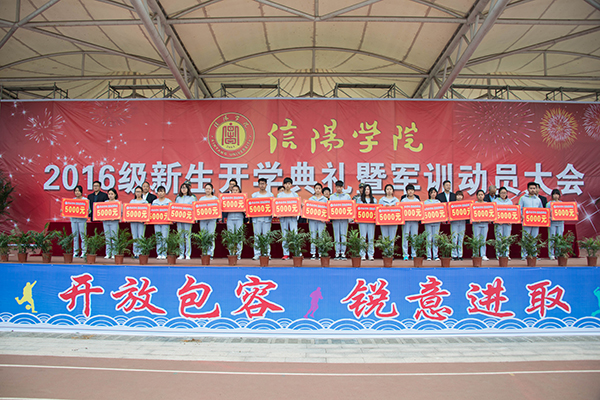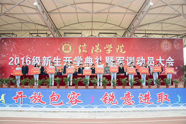 典礼在庄严的升国旗、奏国歌仪式中拉开序幕。傅洪涛宣读了《关于表彰2016级优秀新生的决定》,学校利用“校长基金”对高考成绩高于二本批次录取控制线的优秀新生给予一等奖,奖金各10000元;对高考成绩位居全校前30名的优秀学生给予二等奖,奖金各5000元;对综合分名列美术类和音乐类专业第一名的优秀新生给予二等奖,奖金各5000元。王志华宣读了《关于表彰2015-2016学年度优秀导师的决定》,对2015-2016学年实施大一新生学习生活导师制中涌现出的优秀导师给予表彰,并颁发荣誉证书。校领导、部队首长和专家代表共同为孙苗苗等31名优秀新生、黄亚妮等39名优秀导师代表颁奖。