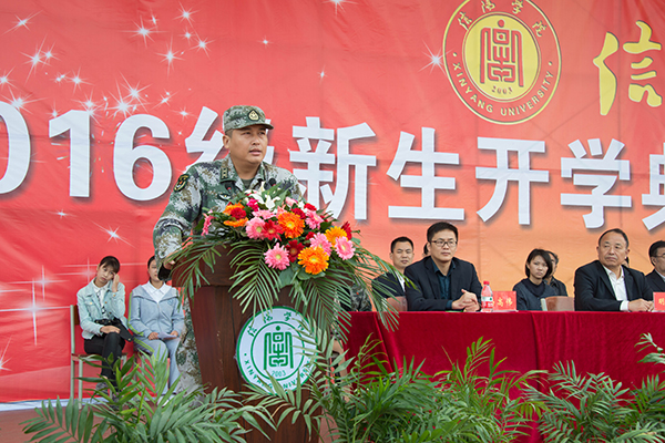闫伟在大会上作重要讲话。他指出,信阳学院一向重视学生国防教育和军事训练,部队和学校在共同培养人才中建立了深厚友谊。他要求各位教官严于责已,以顽强的作风和过硬的本领树立军人和部队的良好形象;希望同学们在服从命令中强化纪律观念,在“摸爬滚打”后学会艰苦奋斗,在相互协助时感受团结友谊,成为有理想、有道德、有文化、有纪律的高素质复合型人才。