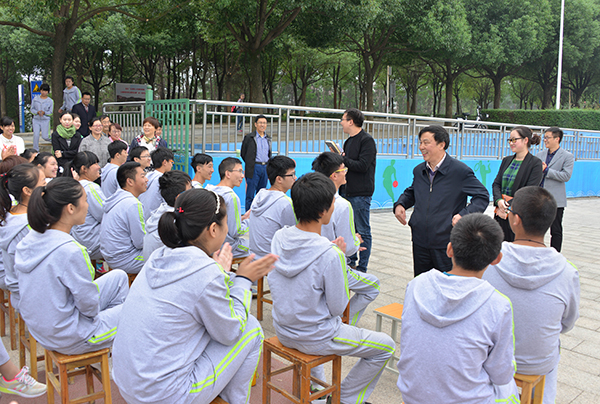 施昌海一行在现场观看了各学院新生的训练情况,听取了教官代表刘大成等所作的简要汇报,与坚持在场指导的文学院院长傅瑛、理工学院院长魏明坤、商学院院长王金献,以及部分学工秘书、辅导员和新生代表进行了亲切交谈。