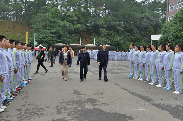 10月11日上午,带着学校理事会和广大师生对“小石榴”们的亲切关怀与密切关注,校长施昌海,党委书记张莉,常务副校长傅洪涛,副校长王志华、毛海涛,校长助理杨高伟,在有关部门负责人张富庄、张甲楠、叶十朋等陪同下,深入学生军训一线检查指导工作,走遍各个训练场地,亲切看望2016级全体参训新生与正在现场指导的教官和教师。