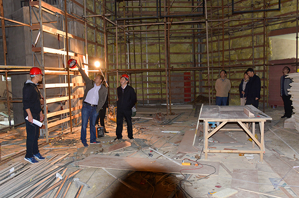 此间,施昌海一行还在学校基建处负责人董以干的陪同下,步入学校新建的音乐厅,看望正在加紧进行内部装修的工作人员。校领导希望施工方和工程管理人员认真按照集团董事会和学校理事会的要求,做到安全施工、科学管理,努力打造精品工程,早日为师生提供一个开展高雅文化艺术活动的优美场所。