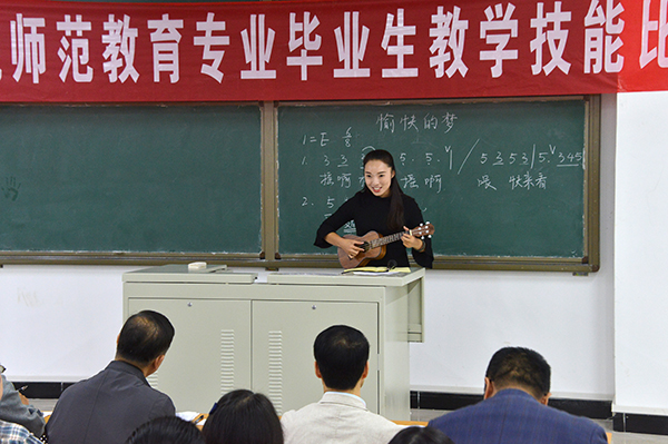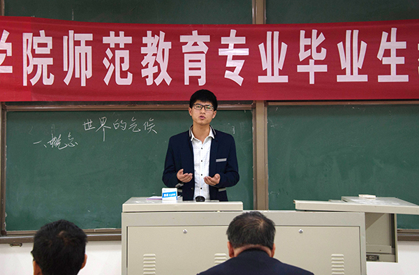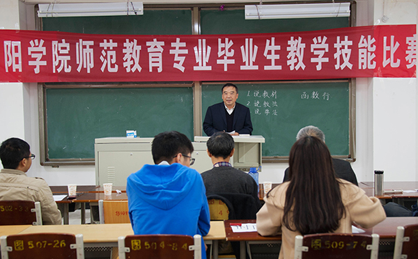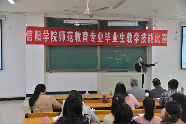 为了深入贯彻落实河南省教育厅《关于举办河南省第十四届高等学校师范教育专业毕业生教学技能比赛的通知》文件精神,促进师范生提高教学技能,学校于10月14日分别在人文楼106、308教室举行了师范生教学技能决赛。副校长毛海涛出席本次活动。傅瑛、郝涌、刘孝诚、张连堂、潘传柏、连星耀、畅静文、董春文等专家和相关专业教师应邀担任大赛评委。教务处处长吴长才等有关部门负责人观摩了竞赛活动。
