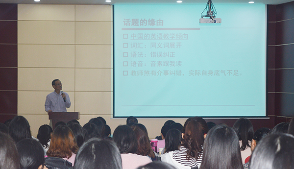 日前,上海师范大学博士生导师蔡龙权教授应邀在图书馆102学术报告厅作了题为《错误分析研究中的自我反省价值》的学术报告。外国语学院200余名师生聆听了报告。报告会由外国语学院院长罗德喜主持。
