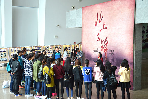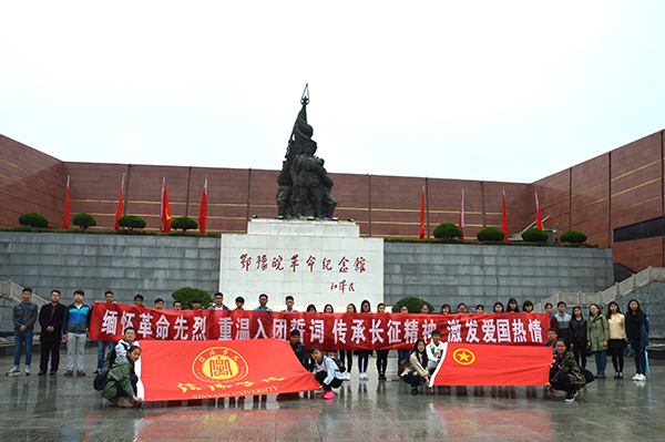 走进红色摇篮,重温革命历史。10月22日,长征纪念日当天,校学生会、社团联合会、大学生记者团等组织的学生代表走进鄂豫皖革命纪念馆,近距离学习红色摇篮——大别山革命老区的光辉历史,缅怀工农红军的丰功伟绩,接受革命传统教育。同学们在纪念馆前集体重温了共青团入团誓词,并以纪念长征主题诗朗诵和歌曲演唱等形式,向参观纪念馆的市民群众传扬长征精神和爱国主义精神。
