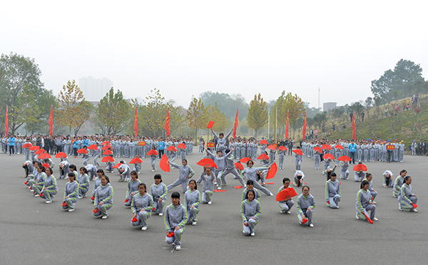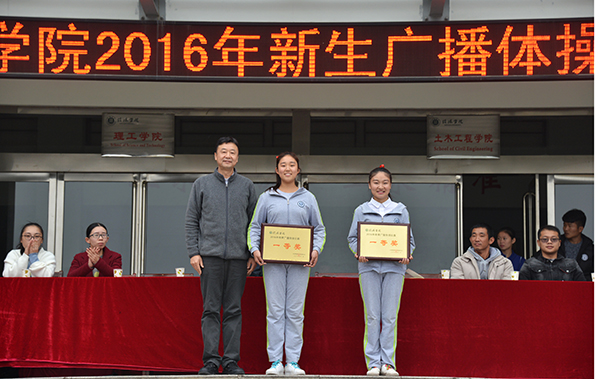 为了进一步落实团中央关于切实做好“三走”工作的指导意见,丰富校园文化生活,营造积极参加体育锻炼的良好氛围,日前,由校团委主办,校学生会承办的2016年新生广播体操比赛在理工楼广场举行。副校长王志华莅临比赛现场观看指导。学生工作处副处长张甲楠、团委副书记胡秀云、公共体育部教师张雷及各学院团学工作负责人共同担任比赛评委。