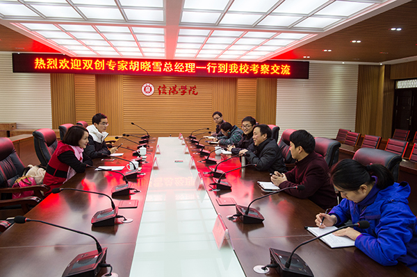 施昌海对胡晓雪一行到我校考察交流表示欢迎,并简要介绍了我校办学发展概况与双创工作有关情况。他说,信阳学院成功实现转设更名后,赢得了更高的发展平台和更大的发展空间。当前,学校积极响应国家“大众创业,万众创新”的号召,专门成立了由理事长高云女士为主任委员的众创空间建设管理委员会,并设立了100万元的种子基金,支持师生开展双创项目。学校专门建设的创业大厦即将封顶,建成投入使用后会为师生双创提供更好条件。