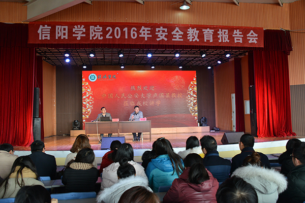 12月15日上午,中国人民公安大学卢国显教授应邀来我校,为广大师生作了题为《本体生存安全:当代大学生生命、信仰与文化迷失与回归》的安全教育报告。我校副校长王志华主持了报告会,有关部门负责人张甲楠、胡秀云等和师生代表600余人聆听了报告。