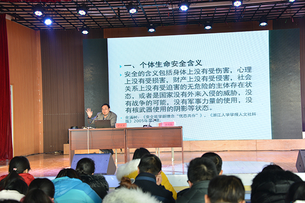卢教授学识渊博、见解精辟、诙谐幽默,通过列举大量的案例,生动地讲解了个体生命安全和心理安全的重要意义,并向现场师生传授了在面临危险时如何应对以及在特定险情下怎样求生存等技能。卢教授还多次与大家互动交流,近两个小时的报告会,气氛热烈、秩序井然,取得了良好的教育效果。