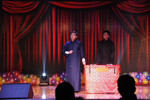 晚会在一曲《感谢春天》中拉开帷幕。优美的古典舞蹈《洛水佼人》、《蝶影》跳出了姑娘们亭亭玉立、婀娜多姿的优美神采;小品《偶像团》、《相亲》、相声《看电影》赢得观众捧腹大笑;音诗画《以青春的名义宣誓》,以学校“为乡村而教”志愿服务项目为创作素材,表现了志愿者们关爱留守儿童,助力美丽乡村建设的感人举动;歌曲《房间》展现了宿舍中同学们的深厚情谊,反映出公寓文化的重要意义;飞鹰运动协会的舞蹈《军中姐妹》,跳出了退伍复学学子退伍不褪色的军人本色;萨克斯独奏《夜来香》带领观众重温经典音乐的魅力;诗朗诵《您的90,我的90》歌颂了伟大的革命精神,激励着学子奋发图强,走好新长征;T台秀《多彩青春》展示了学生的青春与活力;最后,晚会在团委王红老师《我的深情为你守候》的动情演唱中落下帷幕。
